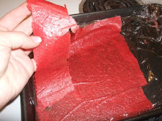 *Spray non-stick cooking spray on both sides of saran wrap and place on cookie sheet. Spread fruit mix on top in a thin layer.